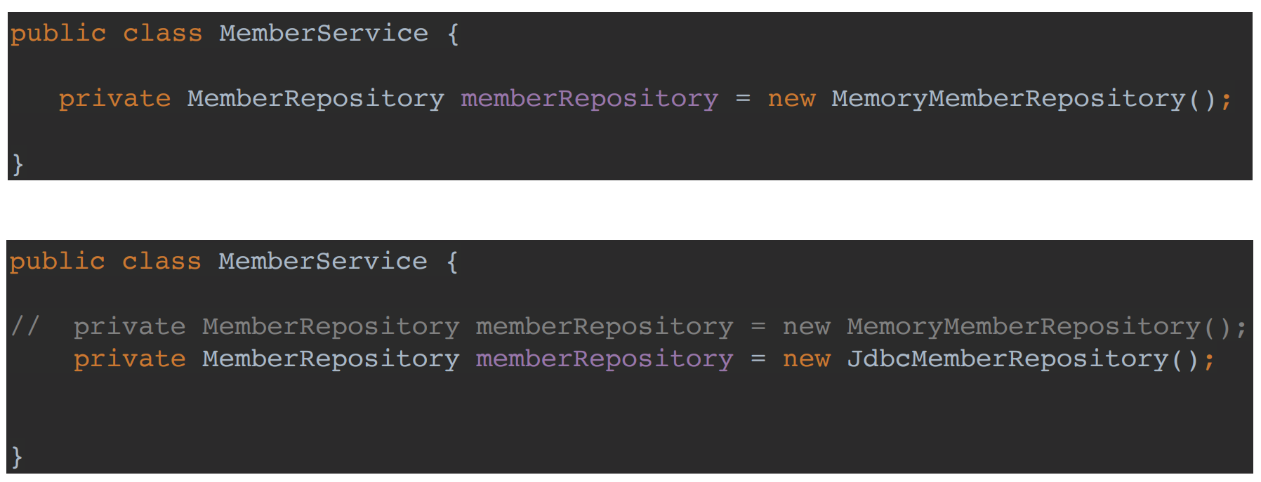 • • MemberRepository m = new JdbcMemberRepository(); //코드 변경