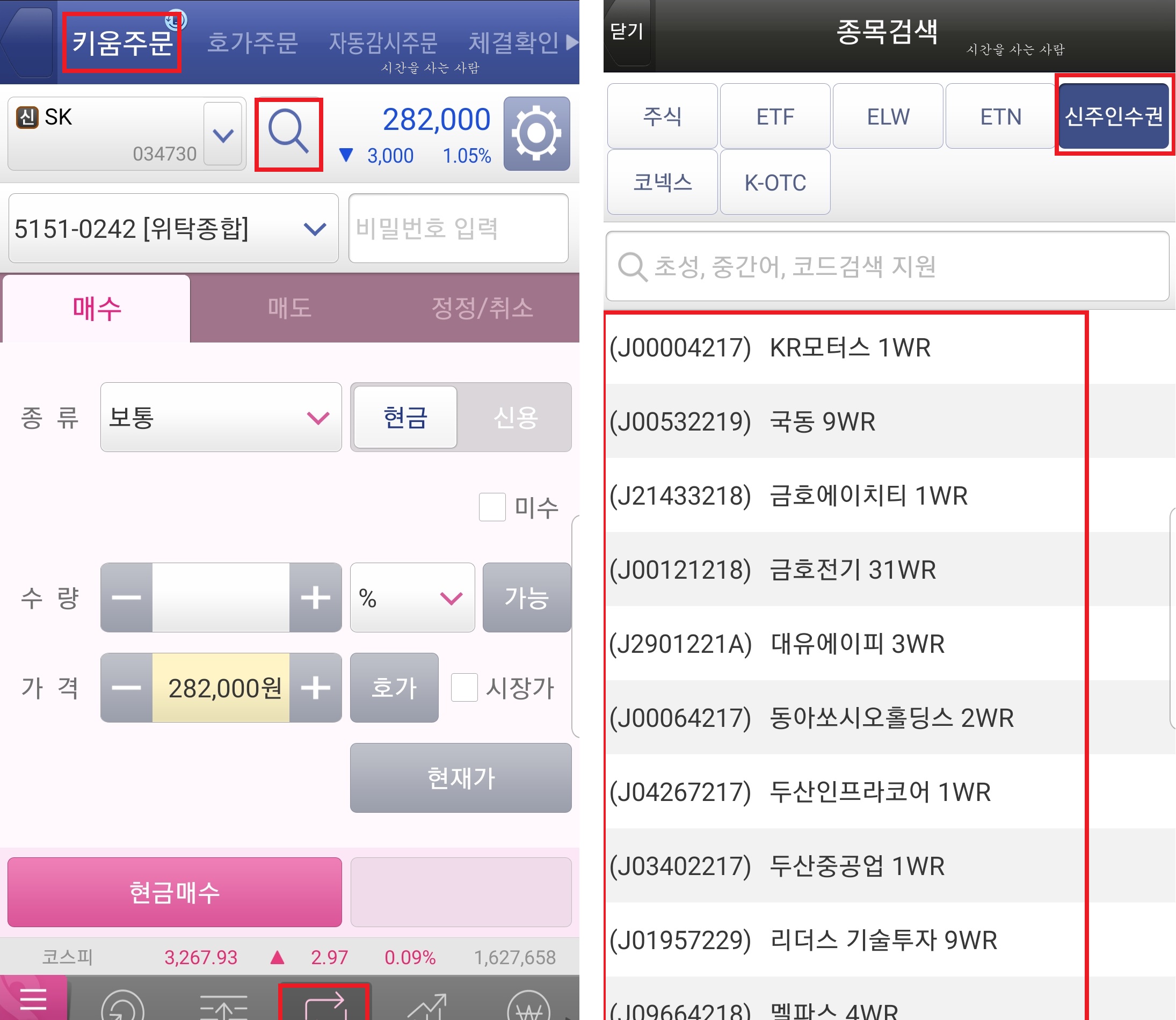 신주 인수권 주식 매매 방법 신주 인수권 매매는 사실 주식 매매와 비슷합니다. 다만 일반적인 어프로치에 차이가 있습니다. 항상 거래하던 주식을 검색하던 증권사 HTS, MTS에서 신주 인수권 종목 이름을 검색하고 원하는 결과를 찾을 수 없기 때문입니다. 주식을 주문하는 주식 주문 탭이 아니라 신주 인수권을 거래할 수 있는 다른 시장이라고 이해하면 간단합니다.신주 인수권 주식 매매 방법은 증권사 앱마다 조금씩 다르지만 일반적으로[영업]메뉴에서 신주 인수권 관련 하위 메뉴를 조회할 수 있습니다. 미래, 삼성, 키 다음, 하나 금융 투자 앱의 방법은 모두 비슷합니다.신주 인수권 현재 가격 메뉴를 클릭하면 신주 인수권을 즉시 검색되지만 일반적인 주식 같은 현재 가격 화면이다 호가 창을 확인할 수 있습니다. 그리고 신주 인수권 메뉴를 선택하라고 주문 창이 등장하고 주문 창인 호가 윈도우는 일반 주식 주문 방법과 마찬가지로 수량을 입력하고 호가를 선택하고 주문하면 됩니다. 매매와도 주식 거래와 같은 방식이어서 쉽게 수 있을까요.주문 시간도 일반 주식과 같습니다만. 매매 시간은 9시부터 15시 30분까지 지정자의 주문만 가능하다는 점, 투자에 참고하세요!