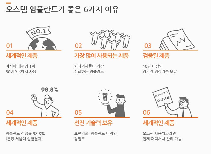 충치나 잇몸질환이 발생하면 튼튼하고 튼튼해 보이는 자연치아도 심한 통증을 겪을 수 있습니다. 경련통, 찌르는 듯한 통증, 심한 통증은 두통을 유발할 수 있으며, 치통이 심한 분들은 이를 뽑고 싶을 정도로 통증이 심합니다. 입안에 심한 통증이 있는 경우가 대부분이며 상태가 심각하고 치료가 어려운 경우 발치를 고려할 수 있습니다. 치료가 가능하다면 진짜 치아를 유지하는 것이 좋겠지만 질환을 방치하고 발치 후 발치 후 수복치료를 시행하는 경우가 많습니다. 수복치료는 치아를 상실하고 발치한 후 치아의 기능을 회복시키는 치료로서 영구치 없이는 생활이 어렵기 때문에 일상생활 속에서 치료를 시행합니다. 오스템 임플란트 가격 uv 51만원, 약 59만원 치아 상실 후 기능과 심미성을 회복시켜주는 수복치료입니다.