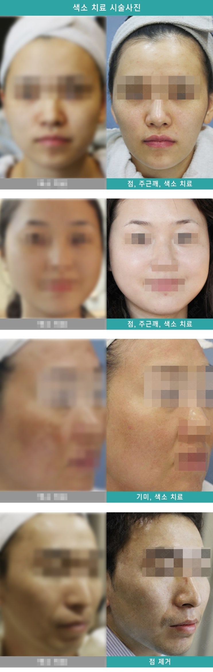 점을 제거하는 것만으로도 눈에 띄는 피부 변화를 느낄 수 있기 때문에 점 제거를 위해 병원을 찾는 분들이 많습니다. 단순 기미부터 기미, 기미까지 다양한 색소질환이 공존하여 맑고 고운 피부로 가꾸어 드립니다. 기미제거 시술을 고려하고 계시다면 다양한 색소질환을 치료한 경험이 풍부한 의료진에게 맞춤형 치료를 받는 것을 권해드립니다.