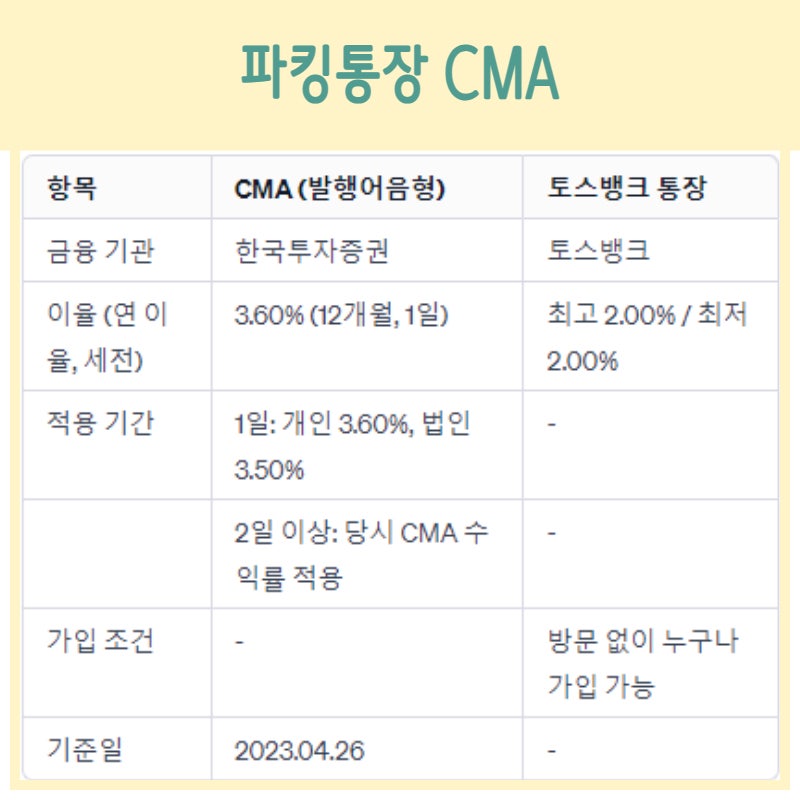 2024년 6월 기준 주차계좌와 CMA 금리 및 금리 비교 리뷰입니다.