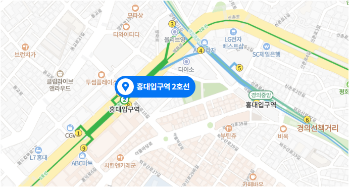 지하철 2호선 홍대입구역 – 6번 출구